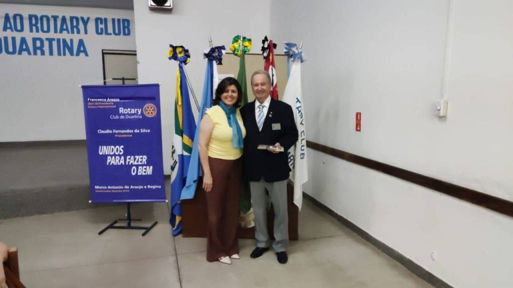 A presidente do Rotary Club Garça Real, companheira Elaine de Oliveira Cândido, agradeceu a presença do palestrante e destacou o caráter motivador de sua fala. Em suas palavras, reforçou a importância de buscar novas experiências dentro do movimento rotário, ampliando horizontes e fortalecendo os laços de amizade e serviço.