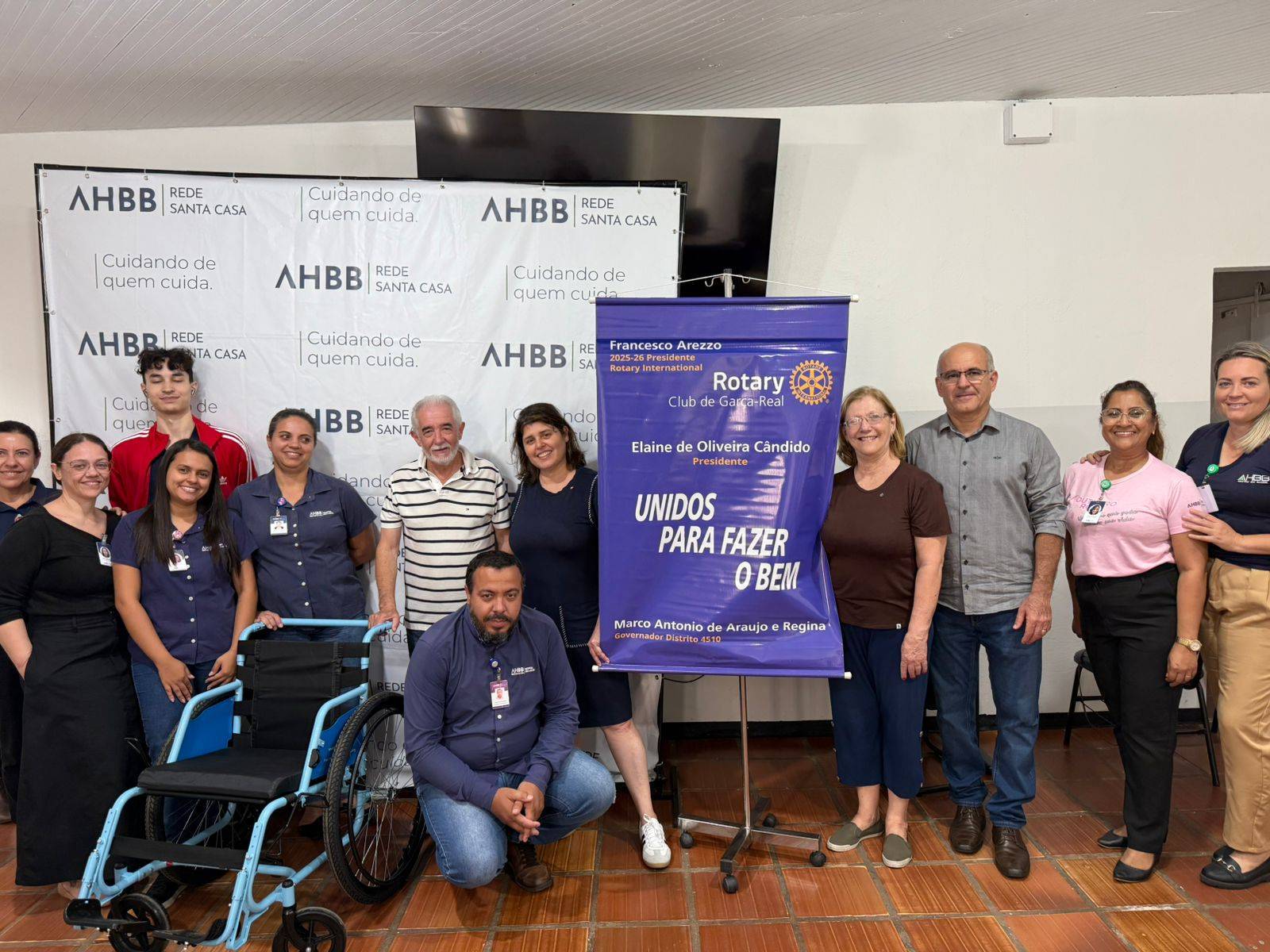 Em mais uma ação de solidariedade e compromisso com o bem comum, o Rotary Club de Garça Real realizou, no dia 28 de outubro de 2025, a entrega de uma cadeira de rodas à Associação Hospitalar Beneficente Brasileira (AHBB), responsável pela gestão do Hospital São Lucas de Garça.